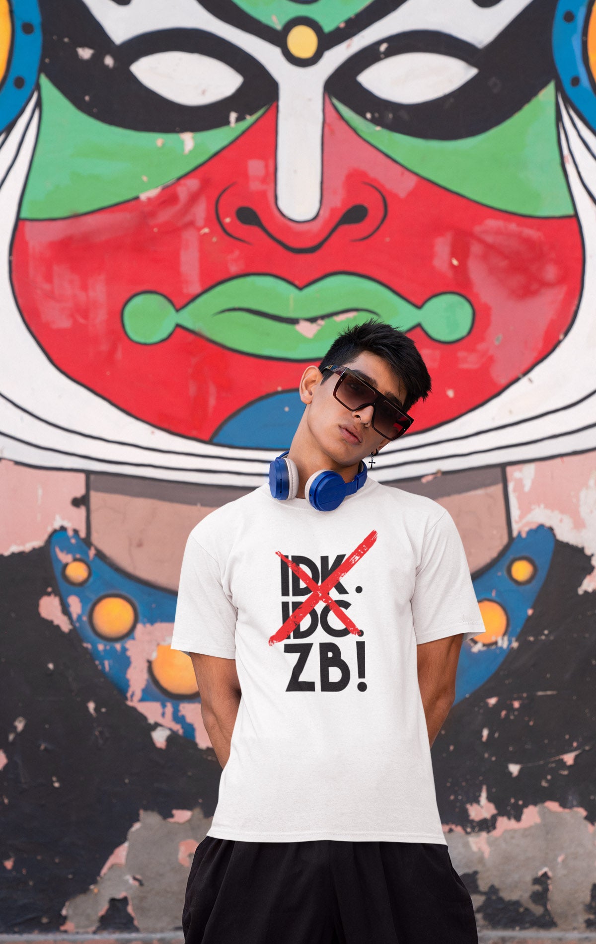 Our bold and unique ZB t-shirt, featuring the ultimate chill slogan: "IDK IDC ZB!" Whether you're hanging out with your squad or just kicking back solo, it's perfect for those who want to make a statement! Whether you're from Goa or just love the local lingo, this t-shirt is sure to turn heads.